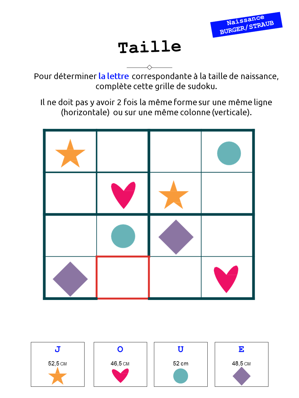 Bonjour !Notre enfant est né hier le 25 mai 2019. Tout s'est bien passé. Nous nous reposons et apprenons à faire connaissance.En attendant, nous vous proposons, au travers de petits jeux rapides, de découvrir les premiers éléments de son identité.